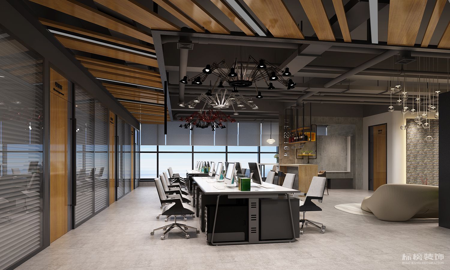 由于是辦公室的設(shè)計(jì),有些功能還是需要規(guī)劃的。空間小想要設(shè)計(jì)好,是有點(diǎn)難度的,其實(shí)這樣的設(shè)計(jì)可以很好的劃分功能區(qū),對(duì)辦公室沒有什么影響,就是采用了一些開放式的設(shè)計(jì),隔墻設(shè)計(jì)或者落地窗設(shè)計(jì)。
